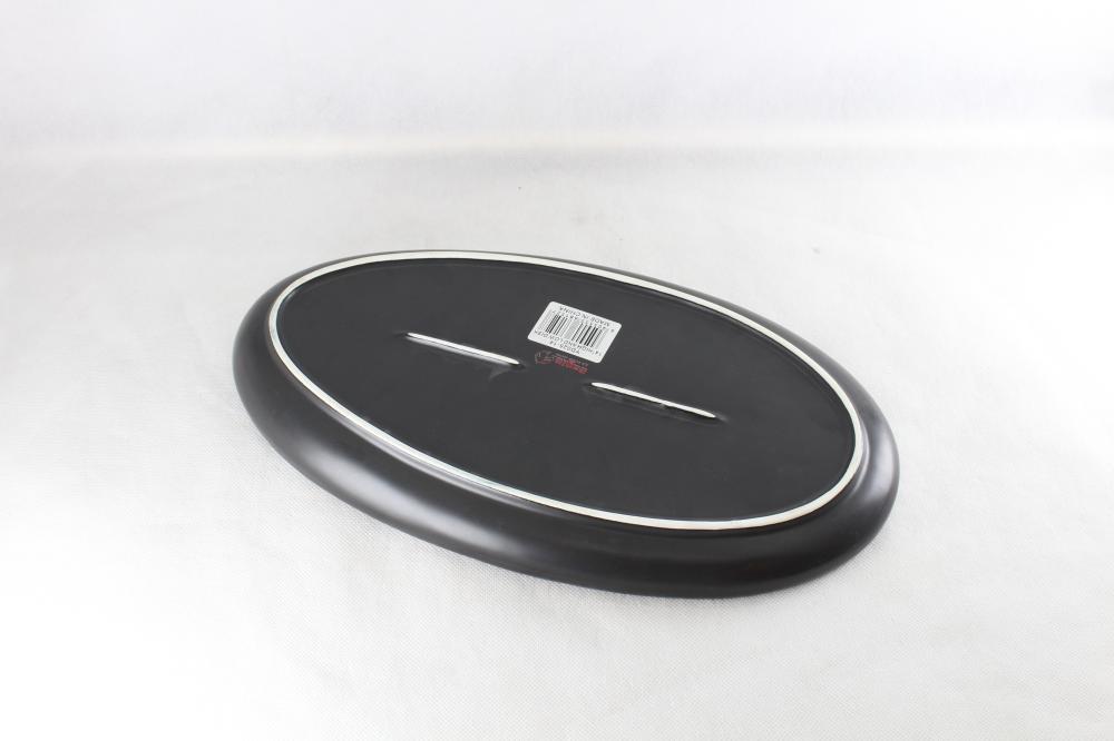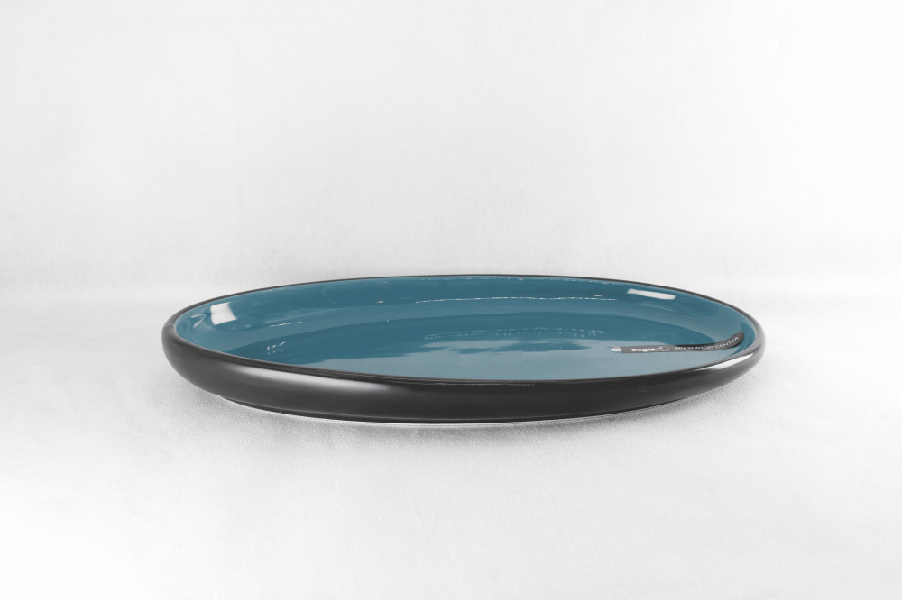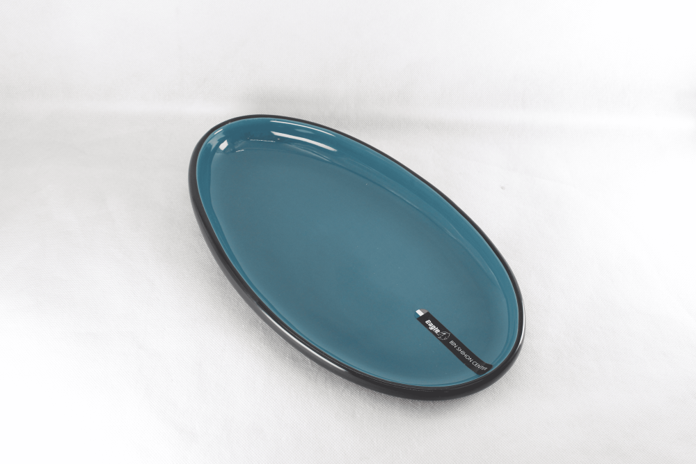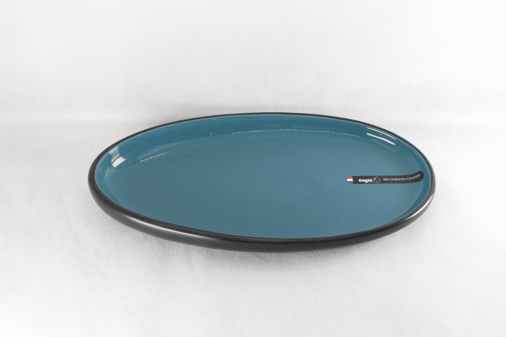 صحن بورسلان بيضاوي اسود وتركوازي 35 سم