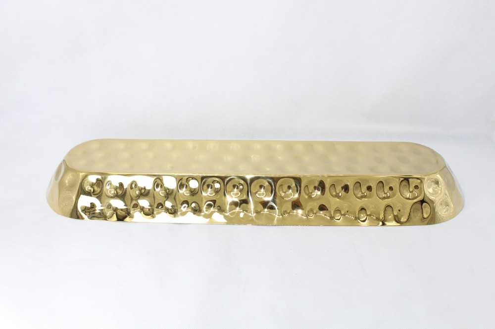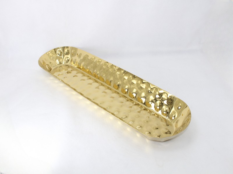 صحن استيل بيضاوي منقوش ذهبي 15.5 *55 سم