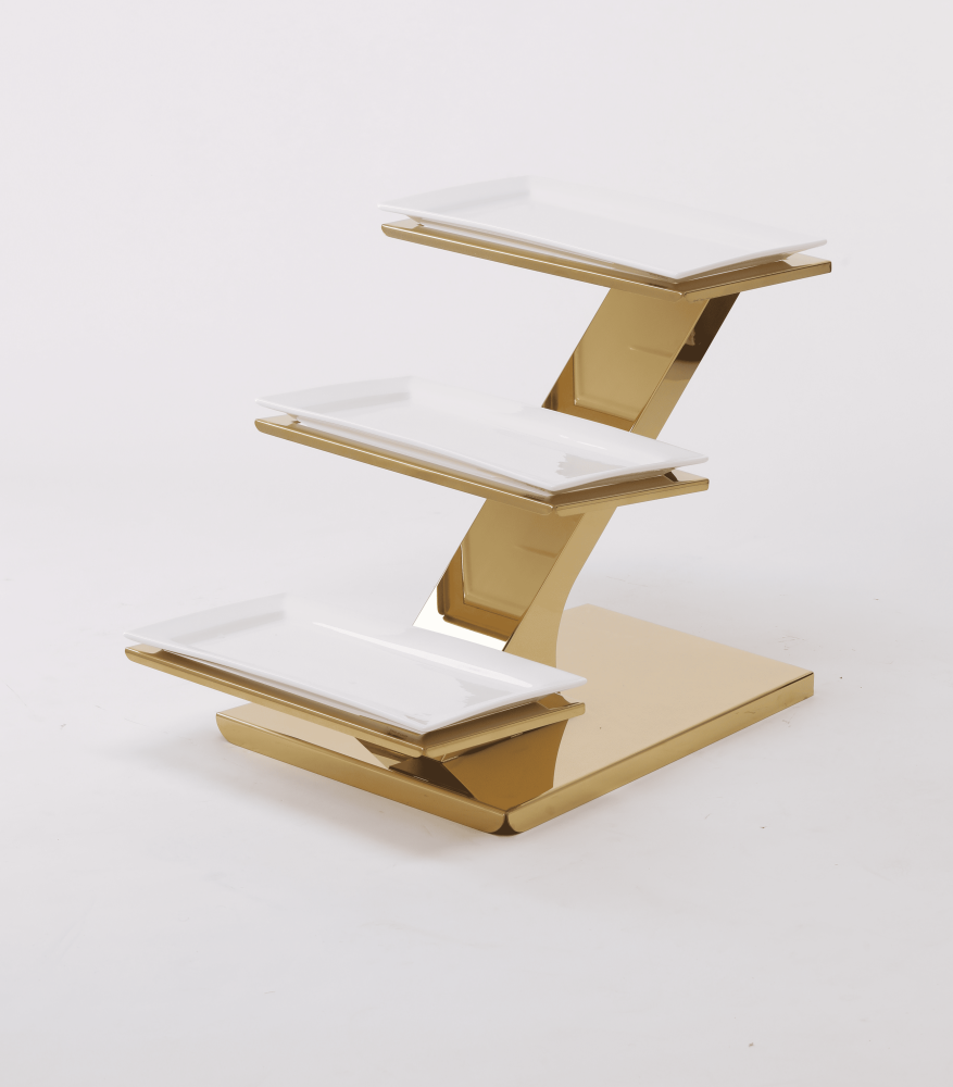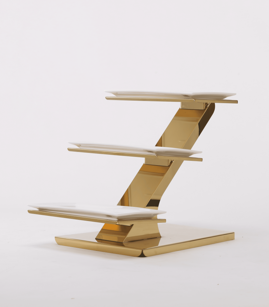 ستاند بوفيه ذهبي مدرج 3 ادوار مع صحن بورسلان