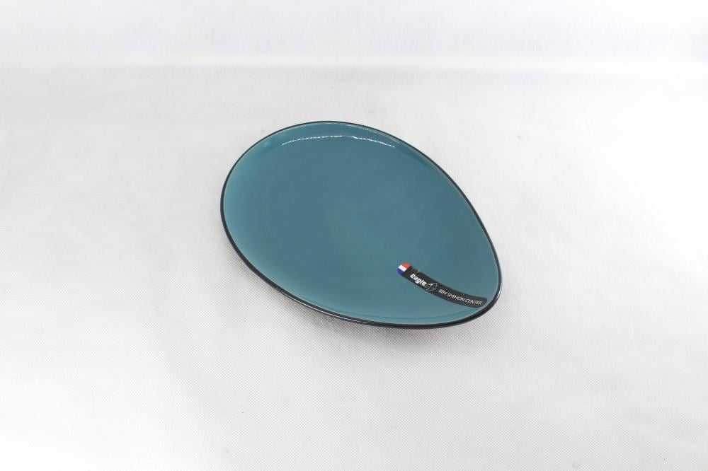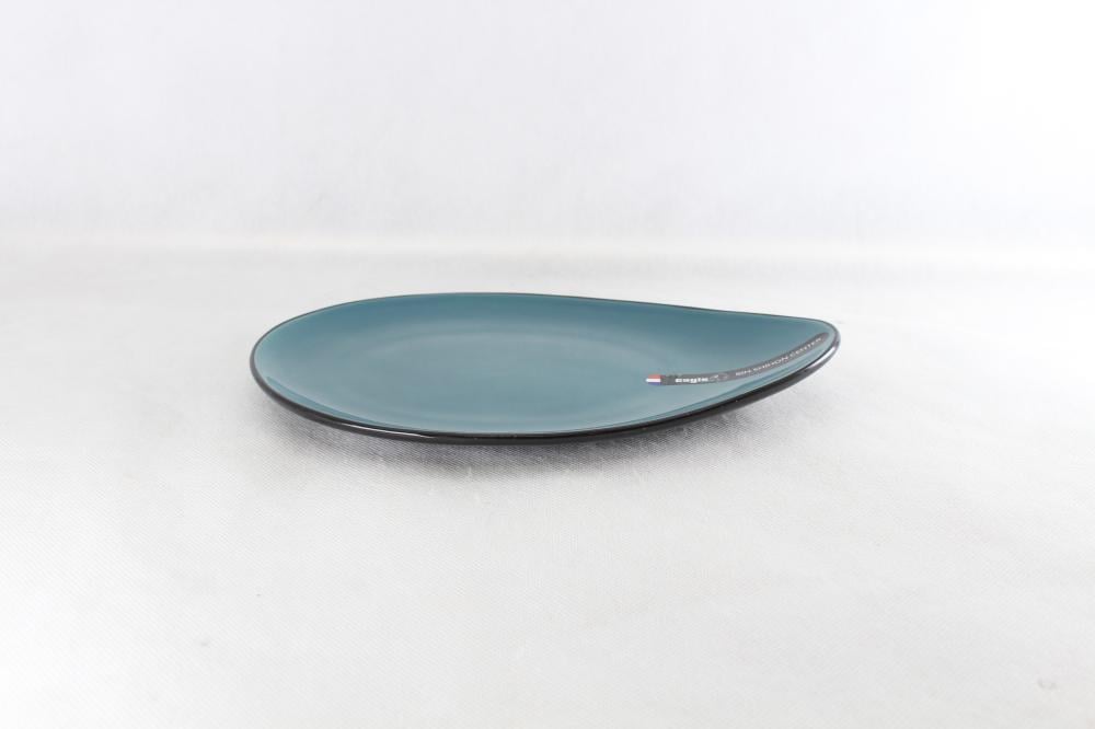 صحن بورسلان بيضاوي اسود وتركوازي 24 سم
