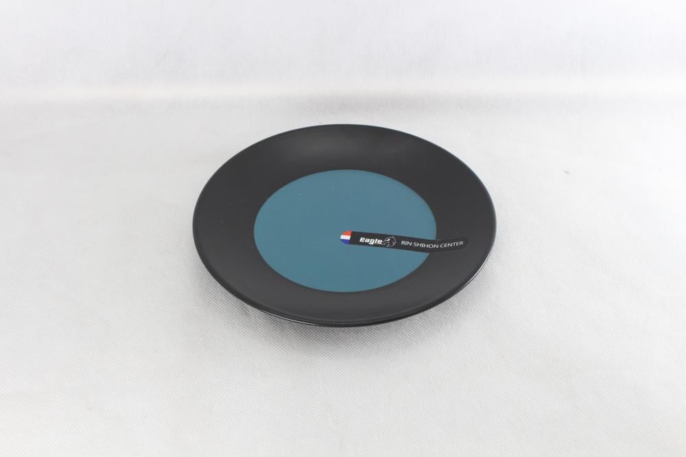 صحن بورسلان دائري اسود وتركوازي 18 سم